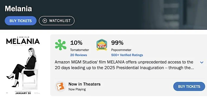 The viewing public is raving about the movie that details the 20 days in the first lady’s life before President Donald Trump took office for the second time, giving the film an astonishing 99% approval on Rotten Tomatoes.