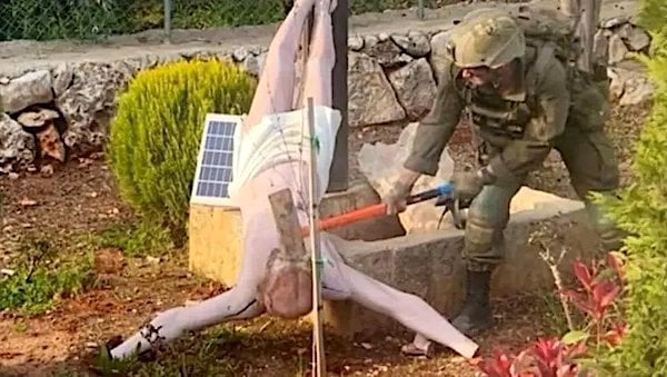 A short while ago, in full coordination with the local community of Debel in southern Lebanon, the damaged statue was replaced by IDF troops. The Northern Command worked to coordinate the replacement of the statue from the moment it received the report of the incident.