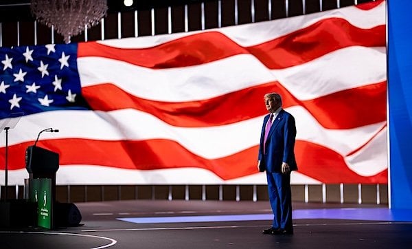 President Donald Trump delivers remarks at the U.S.-Saudi investment forum at the King Abdul Aziz International Conference Center, Tuesday, May 13, 2025, in Riyadh, Saudi Arabia. (Official White House photo by Daniel Torok)