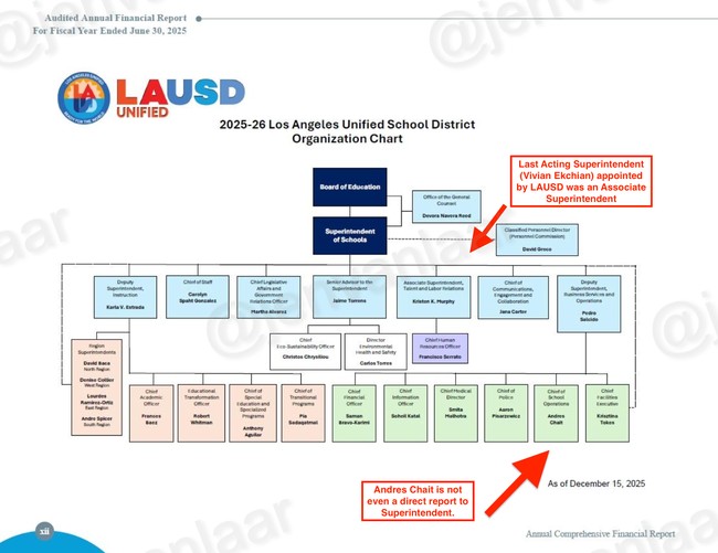 The last time LAUSD appointed an Acting Sup., in 2018, they appointed someone who directly reported to the Superintendent: Vivian Ekchian, who was Associate Superintendent of HR.