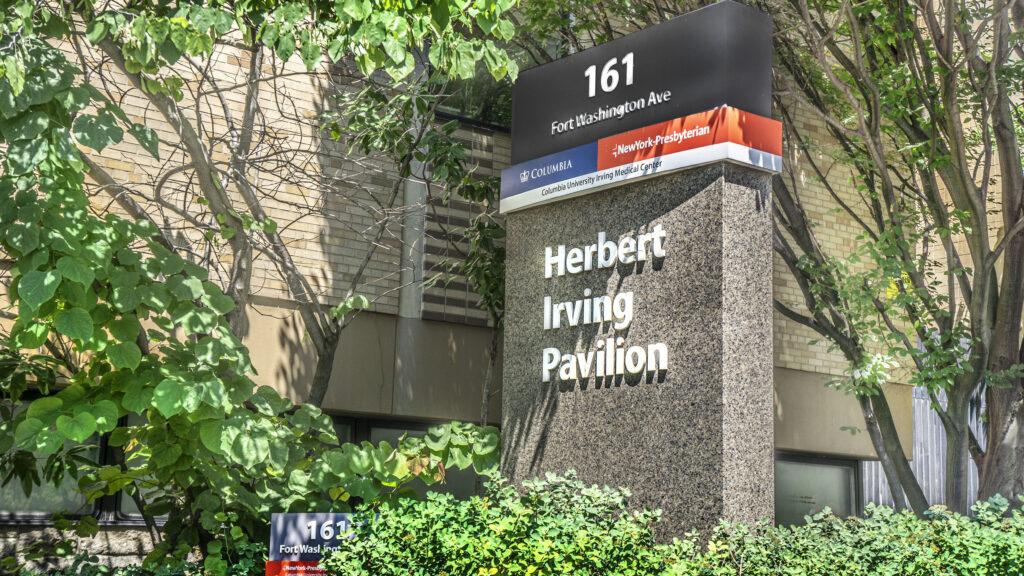 Herbert Irving Pavilion, exterior sign, New York-Presbyterian Hospital/Columbia University Irving Medical Center, 161 Fort Washington Avenue, Washington Heights, Manhattan, New York City, New York, USA. (Spencer Jones/GHI/UCG/Universal Images Group via Getty Images)