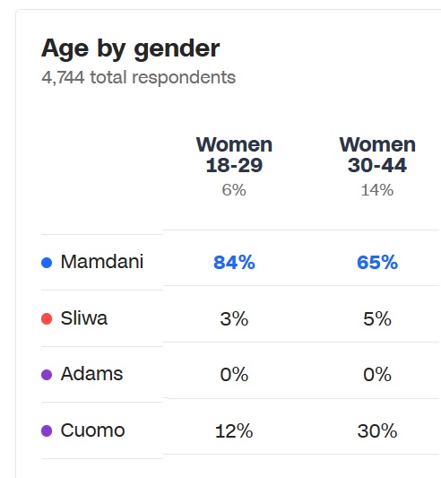 What about in America? New York City had a Muslim communist who wants to replace the much of the police force with social workers on the ballot. So, did young women vote against Islam and against defunding the police?