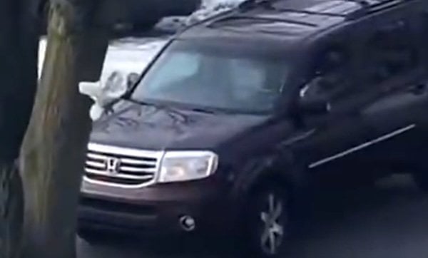 Video shows Renee Good, who was fatally shot by an ICE agent, in her car. The car is parked vertically, partially blocking traffic.