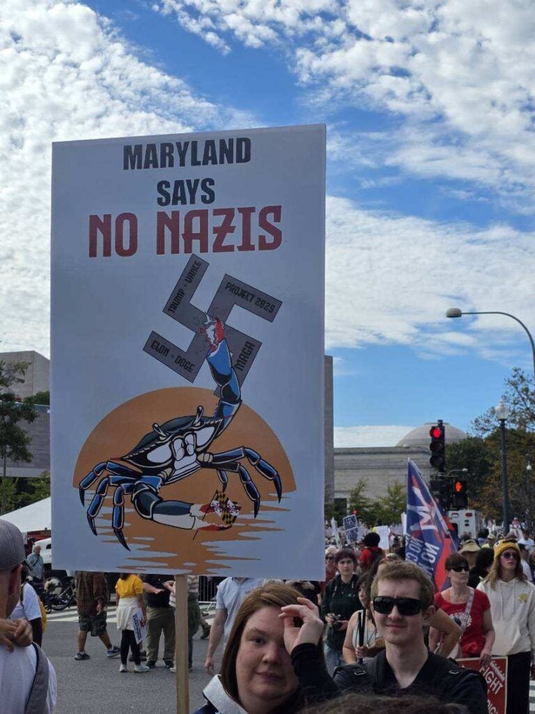 Crabby protesters. I wonder what President Donald Trump did to the blue crab population.