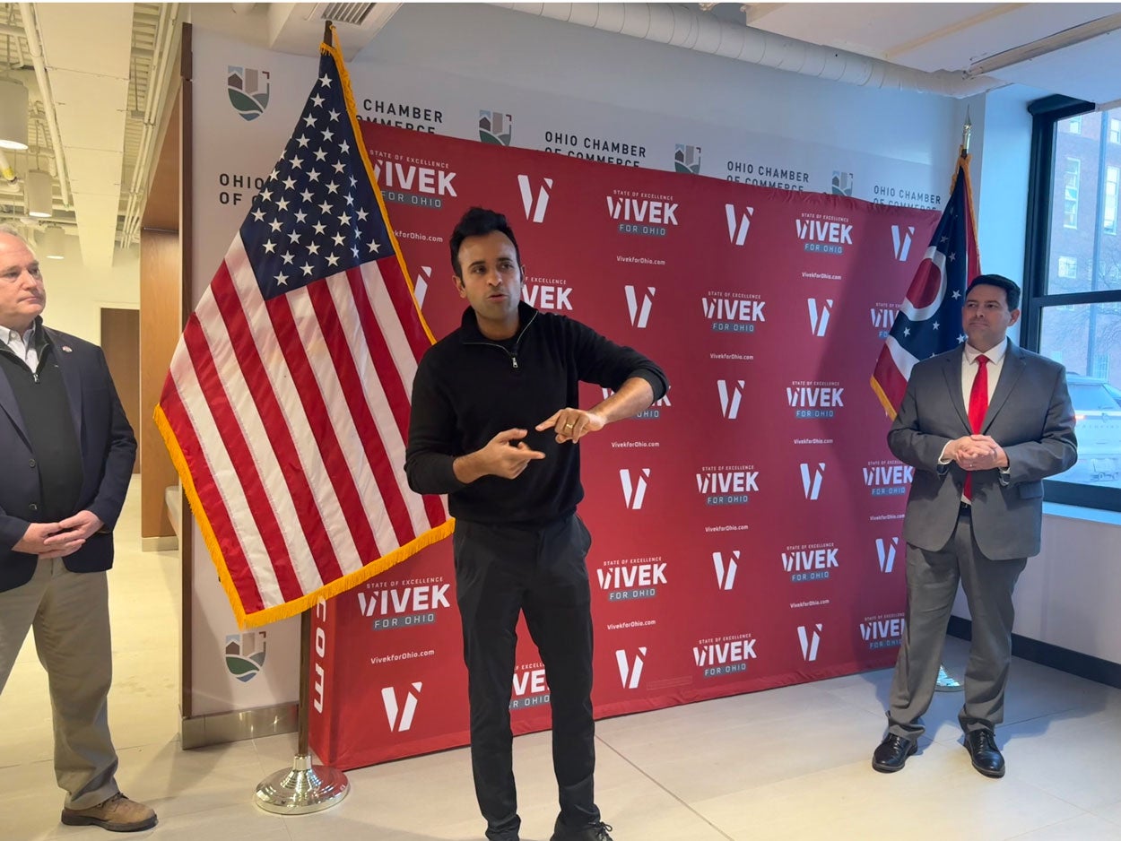 Ramaswamy was joined by Senate President Rob McColley, his pick for lieutenant governor, as well as Forhan’s Republican opponent, Auditor Keith Faber.