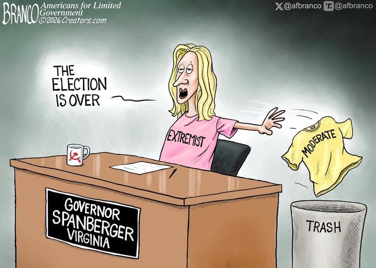 HomeFeaturedQuick change artist Abigail SpanbergerCartoonsCommentaryFeaturedQuick change artist admin April 23, 2026 0Points 0 0 FacebookTwitterPinterestRedditEmail Source link admin Jimmy Kimmel and Others Continue Their Dehumanization Campaign Against Conservatives – RedState Former J6 Prosecutor Heads to Jail After Bizarre Stabbing Case—Why ‘Lectern Guy’ Is Not Happy About It – RedState Hakeem Jeffries Has a ‘Crossing the Rubicon’ Moment, and There May Be No Turning Back From Here – RedState Lee Zeldin Drops the Receipts on Rosa DeLauro in Fiery Budget Hearing Exchange – RedState Dems Called Out by VA Supreme Court Justices Over Brazen Gerrymander Power Grab – RedState Jennifer Siebel Newsom’s Sermon on Respecting Women in Media Ignores Some Inconvenient Facts – RedState Mehek Cooke: Left’s Rhetoric Fuels Climate of Violence Against Trump