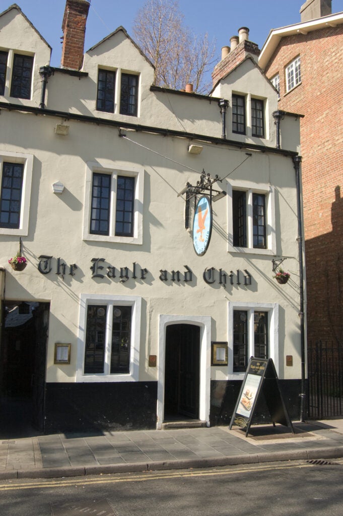 The Eagle and Child public house in Oxford, England, was used as a meeting place by authors J.R.R. Tolkien and C.S. Lewis. (Amanda Lewis via Getty Images)