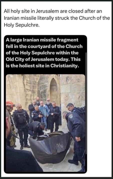 This incident was placed under the microscope of those who claim Christians and Christian rights are under attack, but without the broader context and reality of the war and necessary security precautions. The Palm Sunday incident highlighted how even minimal, pre-approved religious observance can clash with emergency protocols amid active missile threats from Iran. Unfortunately, sometimes missile attacks from Iran can not only shatter buildings and lives, but even a status quo.