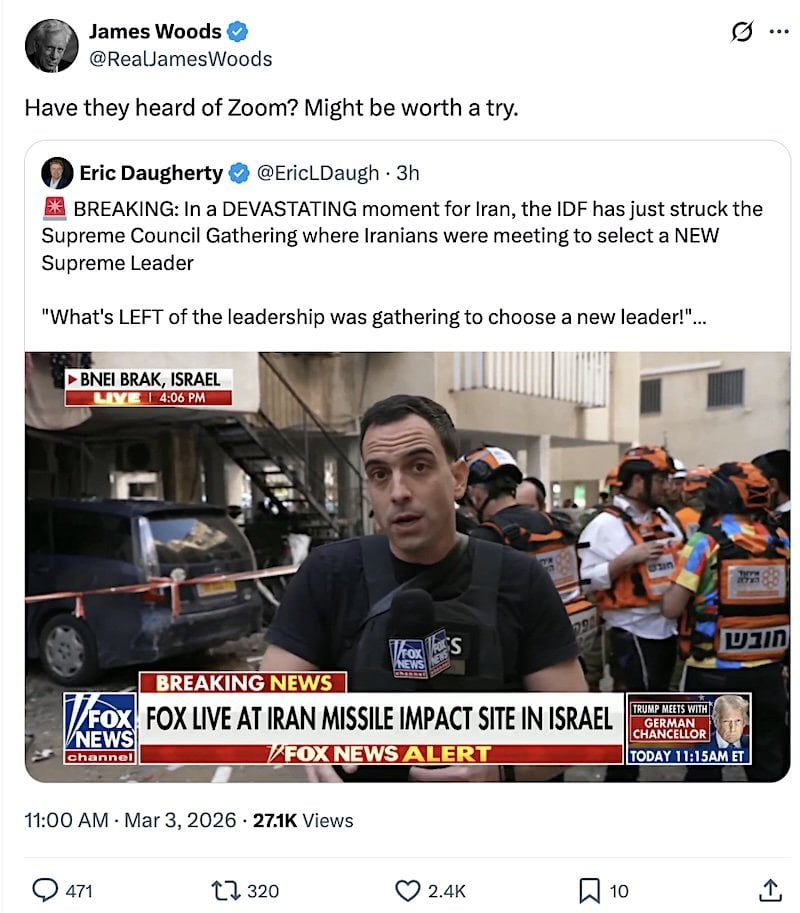 “The Israelis just struck the meeting of the Iranian Supreme Council where officials were gathering to choose a new Supreme Leader, a senior Israeli official told Fox News,” reported Trey Yingst of Fox News.