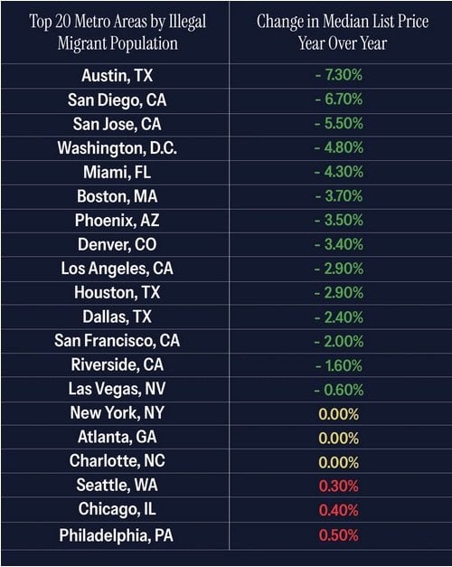 The administration attributes lower housing costs in 14 of the 20 metro areas with the highest number of illegal aliens to deportations and fewer illegal immigrants coming to the U.S.
